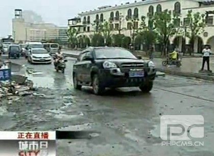 就在我们采访时,一辆别克轿车由于底盘过低,被卡在那里,动弹不得,司机也是无可奈何。