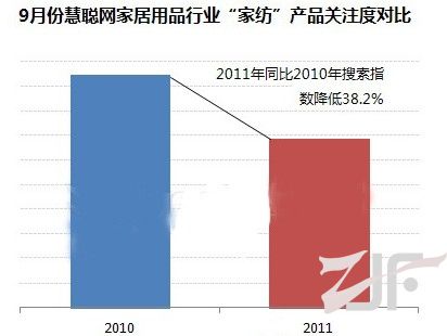 众所周知,家纺是人们家居生活中必不可少的日用品,它不仅能满足人们日常生活要求,同时还能在一定程度上起到家居装饰的协调作用。从上图表我们了解到,2011年家纺产品的关注度同比2010年指数降低38.2%,对于出现这样的情况,笔者分析认为,家纺行业一再“显冷”与市场上棉花价格暴涨、一系列楼市调控是分不开的。一是棉花价格上涨导致很多纺织企业因资金周转不灵而停产,由此引发胚布有价无市。二是房地产业带来的负面影响,买房人比例急速下跌,家纺日用品购买急剧下跌!对于这种情况,家纺企业更应该另辟蹊径、另谋出路引导家纺市场的发展,在市场有限的情况下需要降低成本,提高利润率。