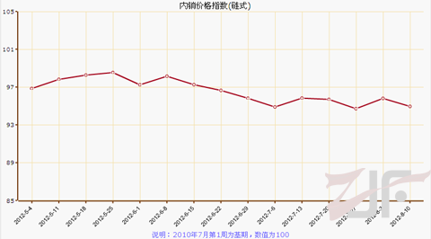2012年8月第二周叠石桥家纺制成品内销价格指数下跌,同比上周下跌0.88%。当前8月第二周内销价格指数收盘于94.96点。虽已进入8月份,家纺行业已经进入换季期,但是现在确是最为炎热的时候,气温保持在33℃左右,因而换季带动家纺市场销售并不明显,叠石桥家纺市场整体仍处在销售淡季。